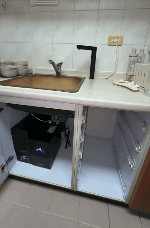 【省錢王-詢問打7折-再送濾心】淨工坊 AQUAS A26-600G 直輸型雙效節能RO純水機 (尊爵黑) (自帶TDS水質檢測) + 淨工坊 AQUAS AQ812 廚下觸控式雙溫飲水機 安裝實例【2025/06/30 新竹陳先生】