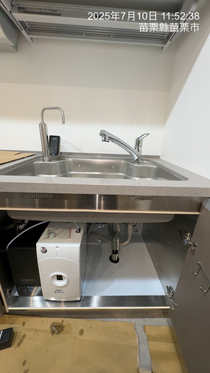 【省錢王-詢問打7折-再送濾心】淨工坊 AQUAS A26-600G 直輸型雙效節能RO純水機 (尊爵黑) (自帶TDS水質檢測) + 普德 Buder BD-3004NI5 觸控式冷熱廚下飲水機 安裝實例【2025/07/10 苗栗彭先生】