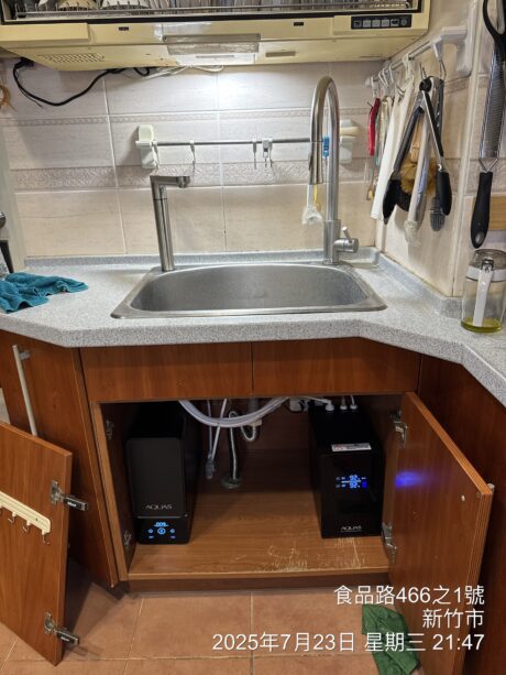 【省錢王-詢問打7折-再送濾心】淨工坊 AQUAS A26-600G 直輸型雙效節能RO純水機 (尊爵黑) (自帶TDS水質檢測) + 淨工坊 AQUAS AQ812 廚下觸控式雙溫飲水機 安裝實例【2025/07/23 新竹黃先生】