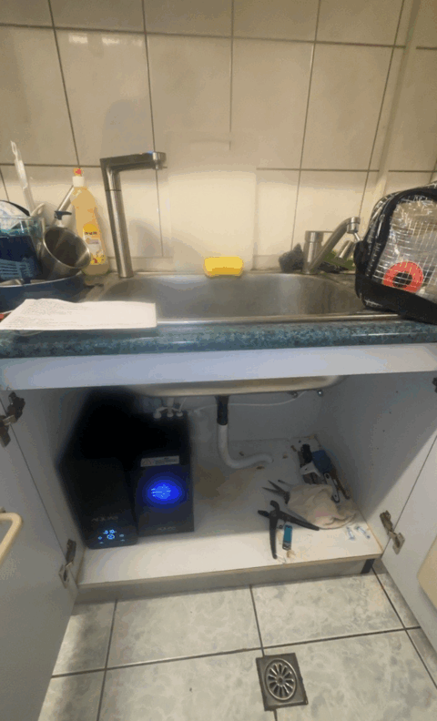 【省錢王-詢問打7折-再送濾心】淨工坊 AQUAS A26-600G 直輸型雙效節能RO純水機 (尊爵黑) (自帶TDS水質檢測) + 淨工坊 AQUAS AQ812 廚下觸控式雙溫飲水機 安裝實例【2025/07/29 台中周先生】