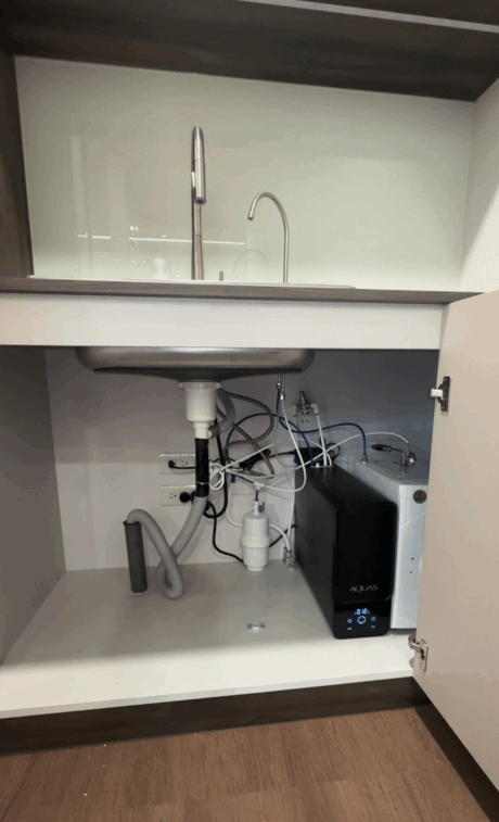 【省錢王-詢問打7折-再送濾心】淨工坊 AQUAS A26-600G 直輸型雙效節能RO純水機 (尊爵黑) (自帶TDS水質檢測) + 普德 Buder BD-3004A 廚下型冷熱飲水機 安裝實例【2025/08/07 新竹】