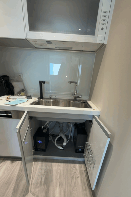 【省錢王-詢問打7折-再送濾心】淨工坊 AQUAS A26-600G 直輸型雙效節能RO純水機 (尊爵黑) (自帶TDS水質檢測) + 淨工坊 AQUAS AQ812 廚下觸控式雙溫飲水機 安裝實例【2025/08/14 新竹王先生】