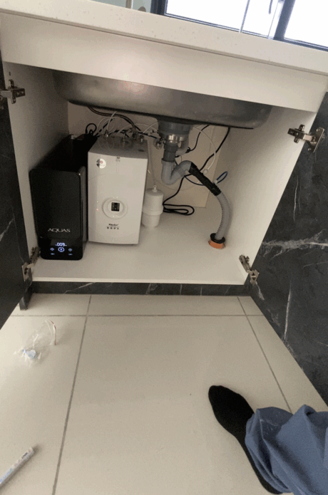 【省錢王-詢問打7折-再送濾心】淨工坊 AQUAS A26-600G 直輸型雙效節能RO純水機 (尊爵黑) (自帶TDS水質檢測) + 普德 Buder BD-3004A 廚下型冷熱飲水機 安裝實例【2025/08/25 新竹羅先生】