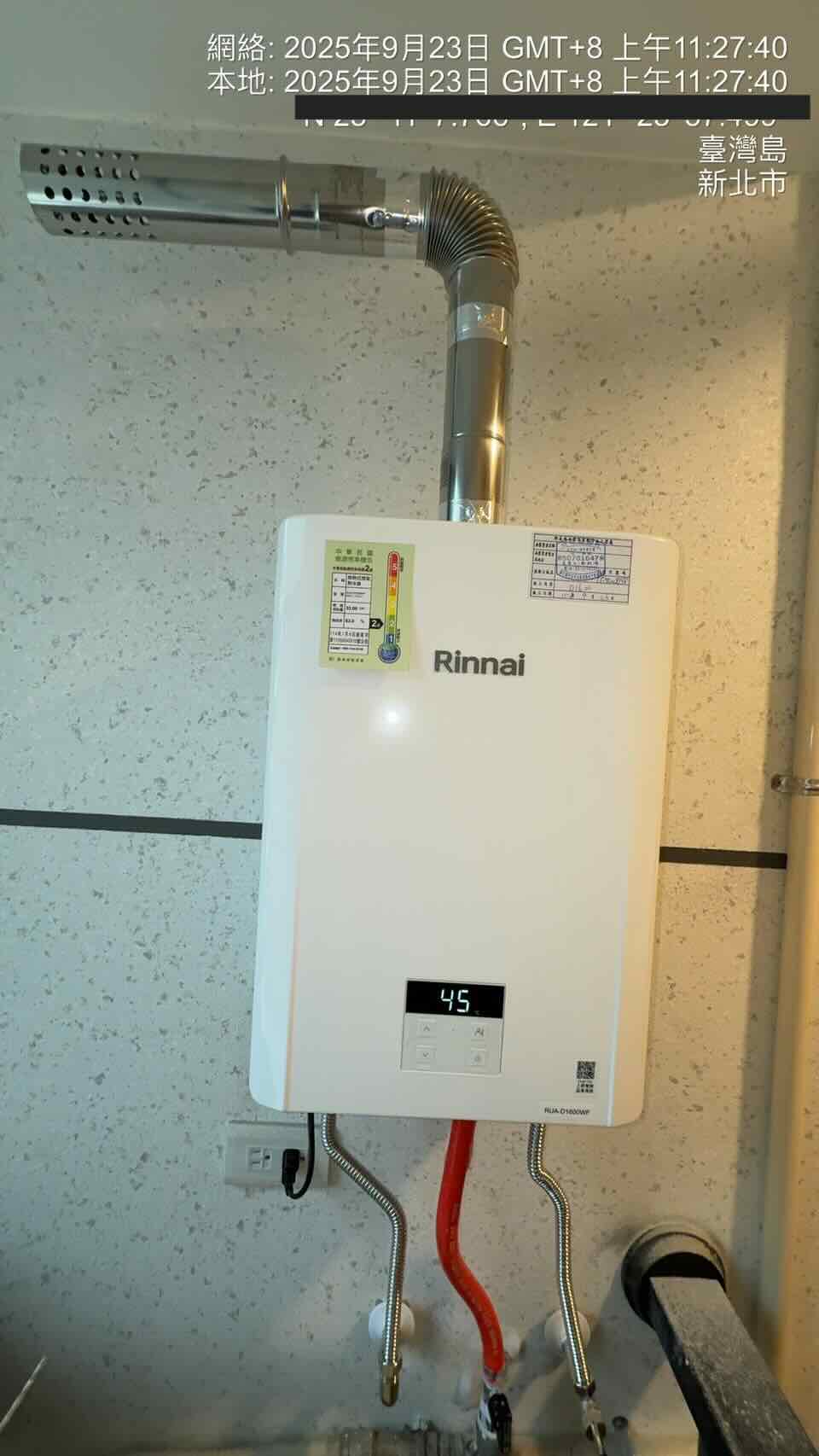 【省錢王-詢問打7折-再送濾心】林內 Rinnai RUA-D1600WF 屋內型16L強制排氣熱水器 安裝實例【2025/09/23 新北吳小姐】