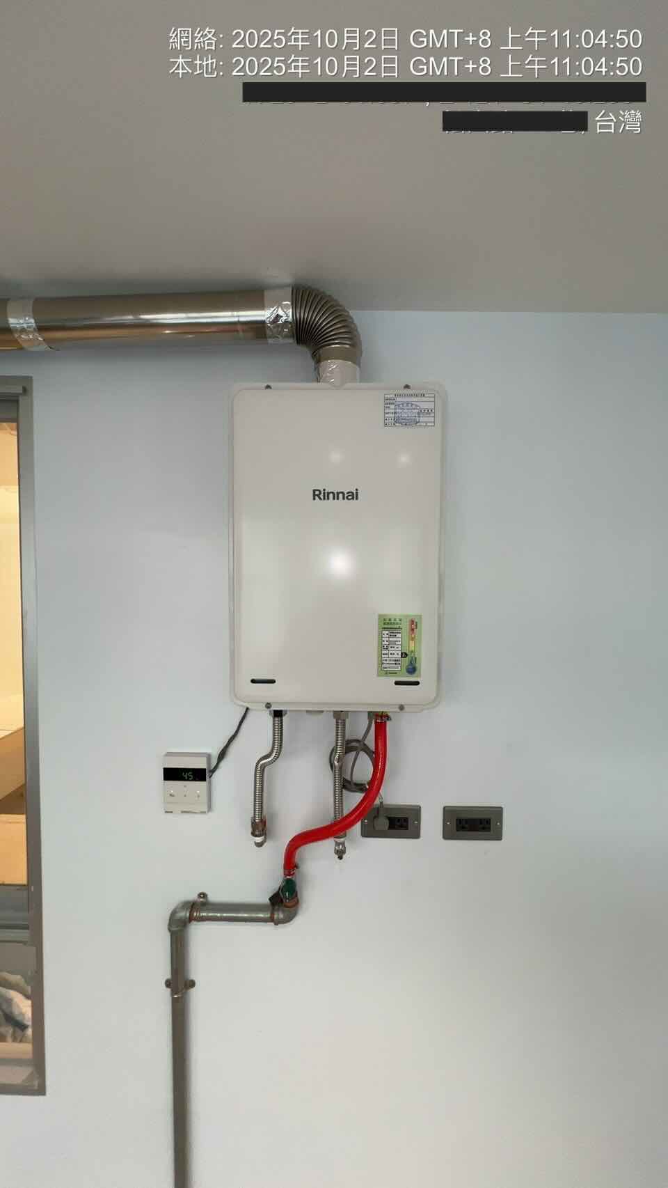【省錢王-詢問打7折-再送濾心】林內 Rinnai REU-A2426WF-TR 屋內型24L強制排氣熱水器 安裝實例【2025/10/02 台北詹小姐】