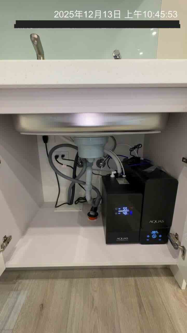 【省錢王-詢問打7折-再送濾心】淨工坊 AQUAS A26-600G 直輸型雙效節能RO純水機 (尊爵黑) (自帶TDS水質檢測) + 淨工坊 AQUAS AQ812 廚下觸控式雙溫飲水機 安裝實例【2025/12/13 新竹葉先生】