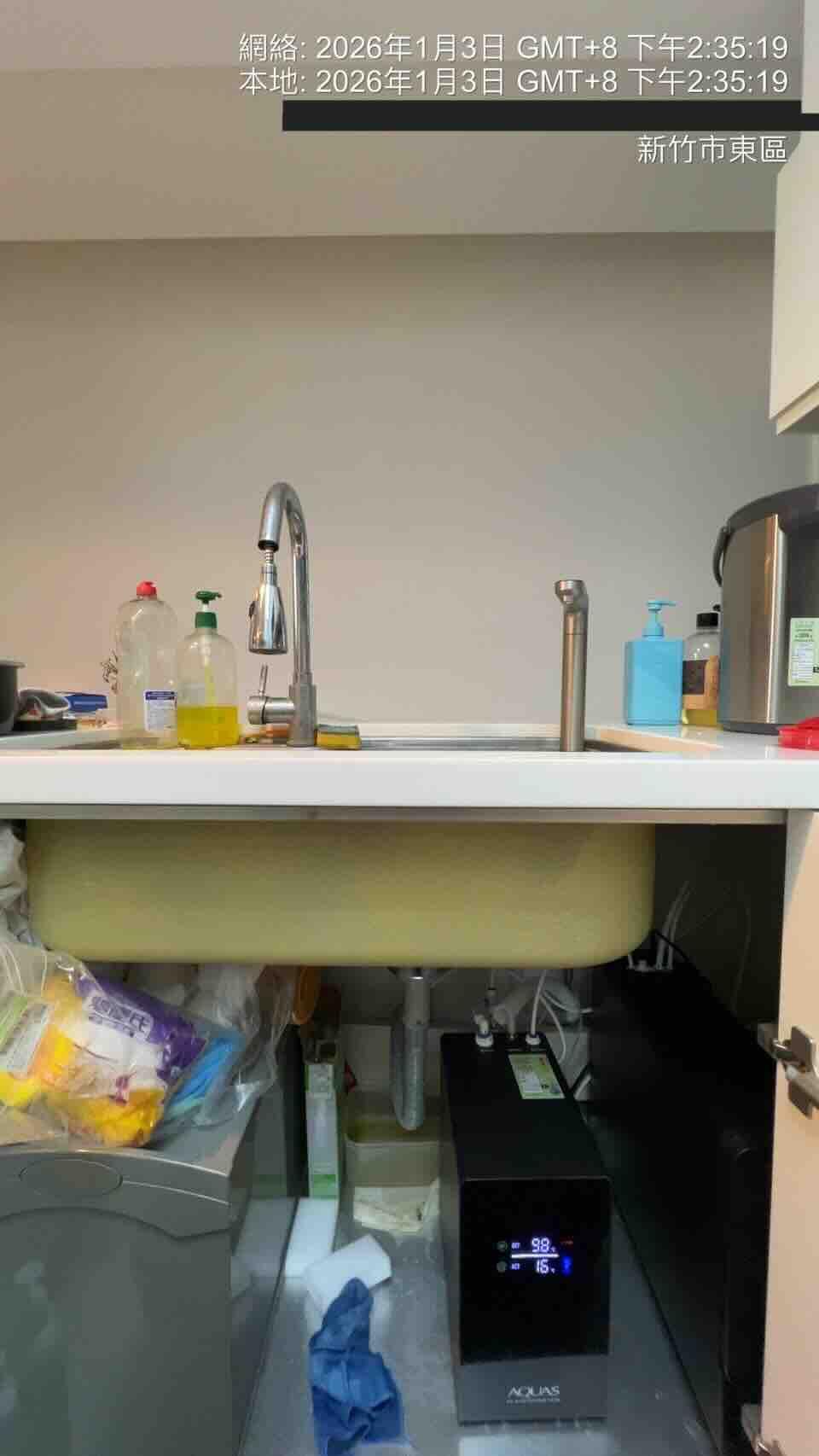 【省錢王-詢問打7折-再送濾心】淨工坊 AQUAS A26-600G 直輸型雙效節能RO純水機 (尊爵黑) (自帶TDS水質檢測) + 淨工坊 AQUAS AQ812 廚下觸控式雙溫飲水機 安裝實例【2026/01/03 新竹洪先生】