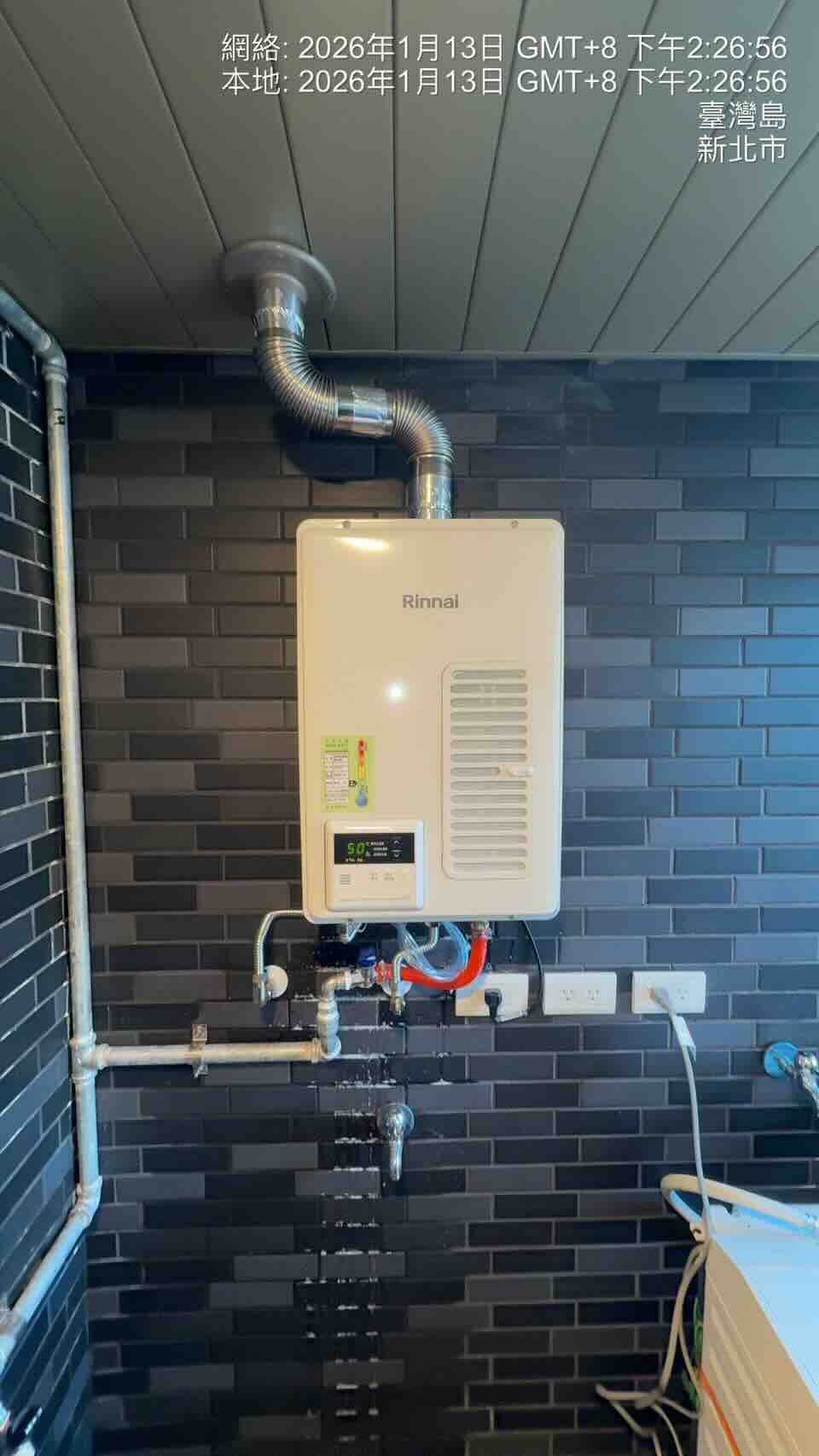 【省錢王-詢問打7折-再送濾心】林內 Rinnai REU-V1613WFA-TR 屋內型16L強制排氣熱水器 安裝實例 【2026/01/13 新北張先生】