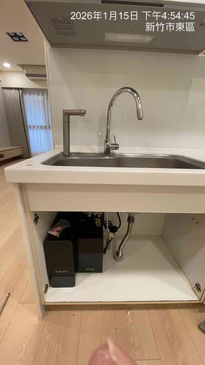 【省錢王-詢問打7折-再送濾心】淨工坊 AQUAS A26-600G 直輸型雙效節能RO純水機 (尊爵黑) (自帶TDS水質檢測) + 淨工坊 AQUAS AQ812 廚下觸控式雙溫飲水機 安裝實例【2026/01/15 新竹林先生】