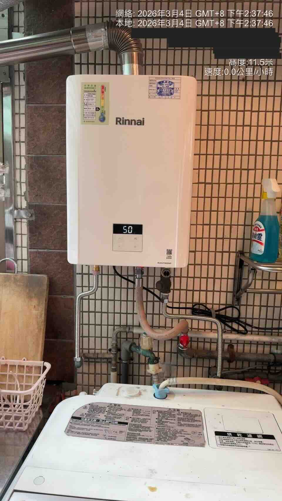 【省錢王-詢問打7折-再送濾心】林內 Rinnai RUA-D1600WF 屋內型16L強制排氣熱水器 安裝實例【2026/02/04 台北柯小姐】