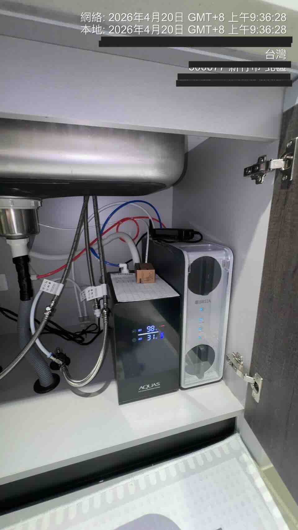 【省錢王-詢問打7折-再送濾心】德國 BRITA mypure GR 600 RO直輸淨水系統+AQUAS 淨工坊 AQ-812 廚下觸控式雙溫飲水機 安裝實例【2026/04/20 新竹鄭先生】