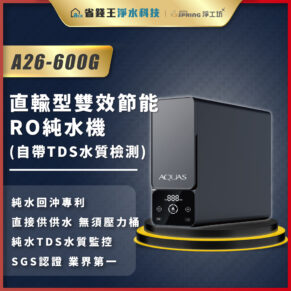 【免費申請補助】AQUAS 淨工坊 A26 直輸型雙效節能RO純水機 A26-600G (尊爵黑) (自帶TDS水質檢測) (純水回沖專利)