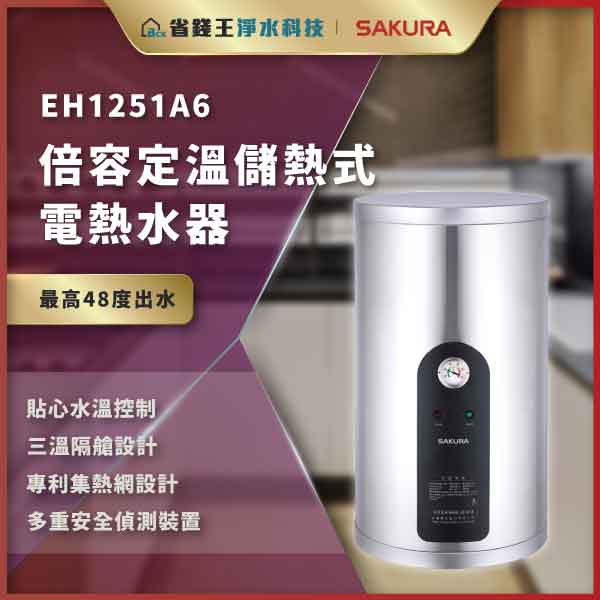 【免費申請補助】【詢問折最低價】SAKURA 櫻花牌 EH1251A6 倍容定溫儲熱式電熱水器 EH-1251A6