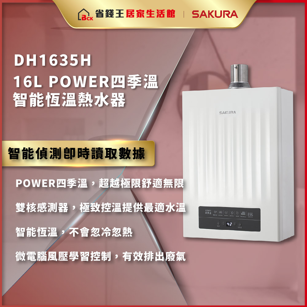 【免費申請補助】【詢問折最低價 】SAKURA 櫻花牌 DH1635H 第三代 POWER 四季溫智能恆溫 強制排氣熱水器