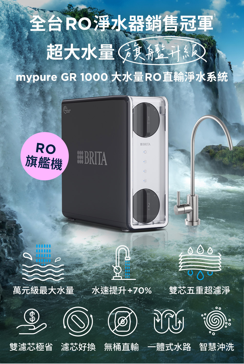 【免費申請補助】【省錢王-詢問打7折-再送濾心】德國 BRITA mypure GR1000 RO 直輸濾水系統 (原廠龍頭)