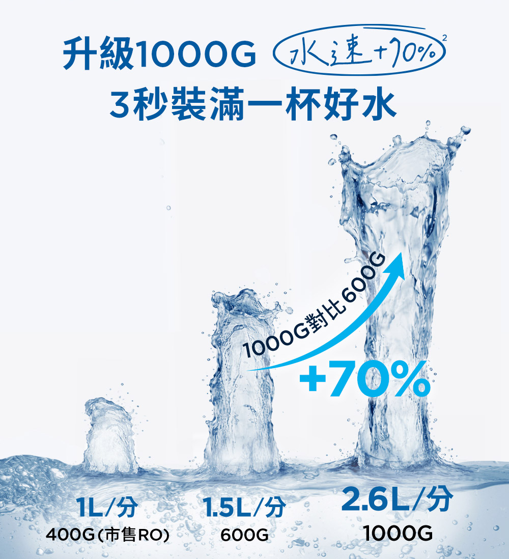 - ✅最高規格1000G造水量,每分鐘出水量2.6L/min