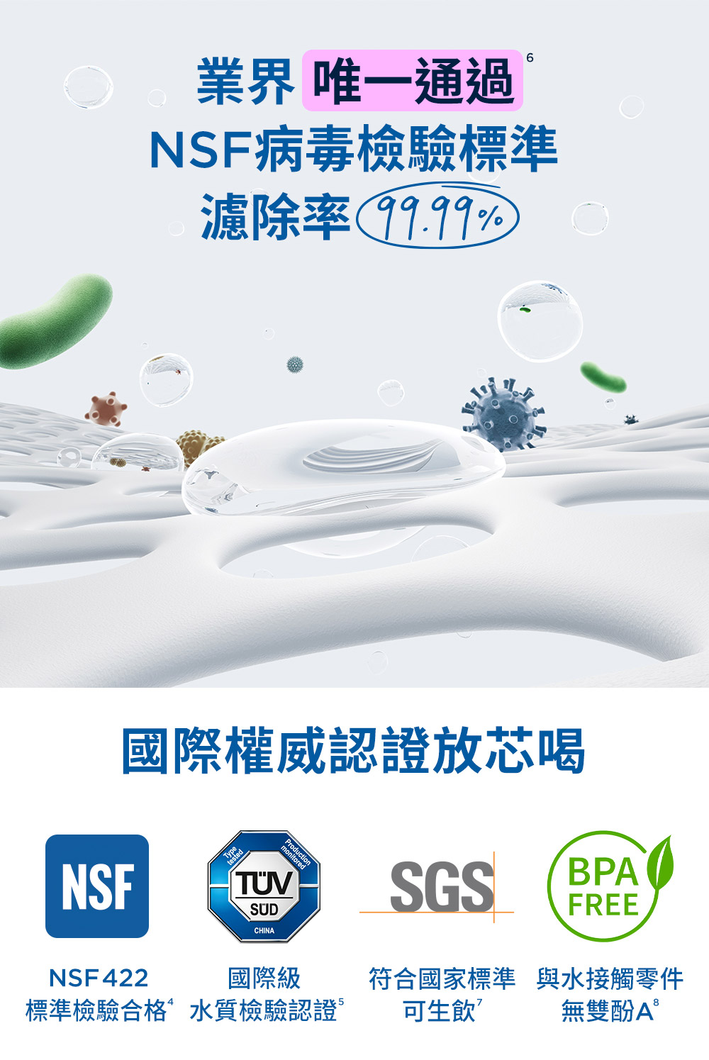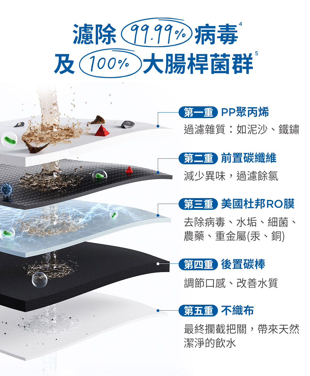 - ✅杜邦RO濾除99.99%病毒及 100%大腸桿菌群