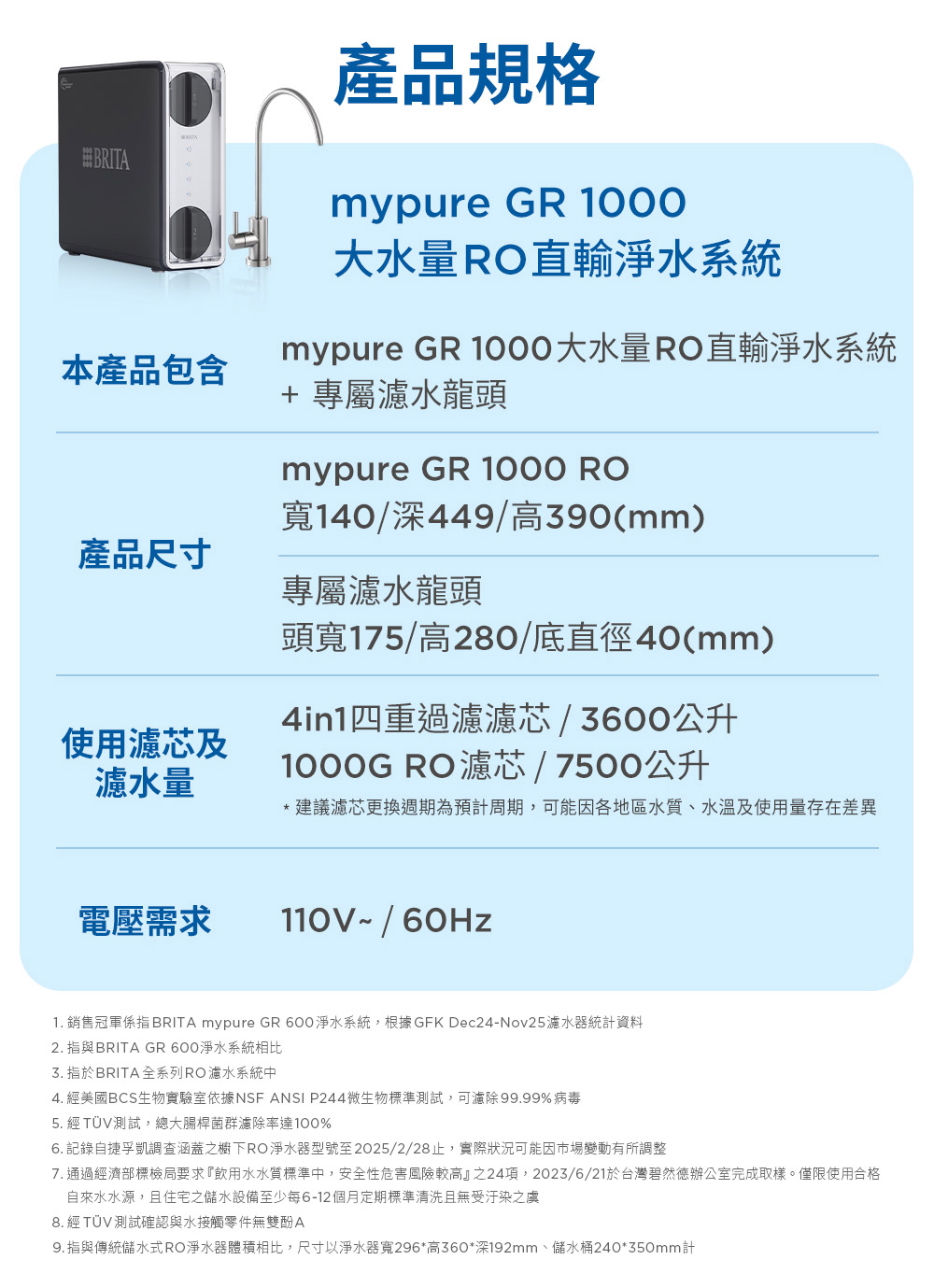| 保固 | 2年(於BRITA官網登錄再追加1年,共計為3年保固) |