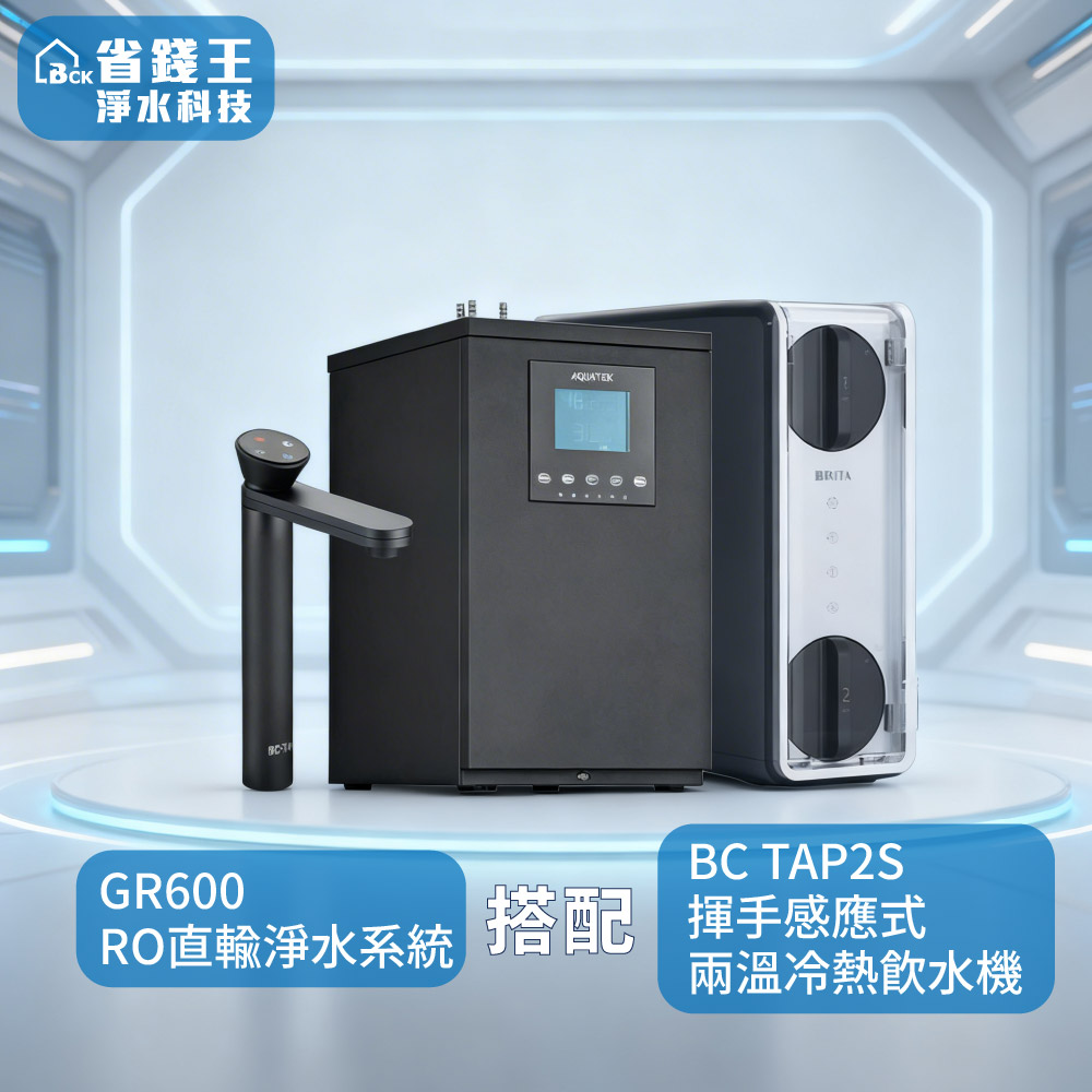 BRITA GR600 RO直輸純水機 搭配 AQUATEK沛宸 BC TAP 2S揮手感應式兩溫冷熱飲水機