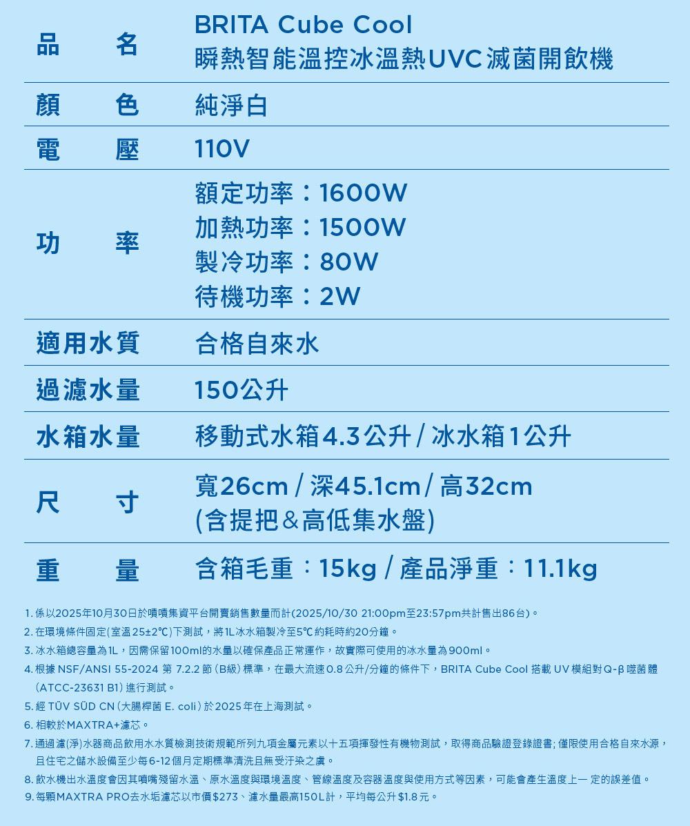 德國BRITA Cube Cool 冰霸方 瞬熱智能溫控冰溫熱UVC 滅菌開飲機