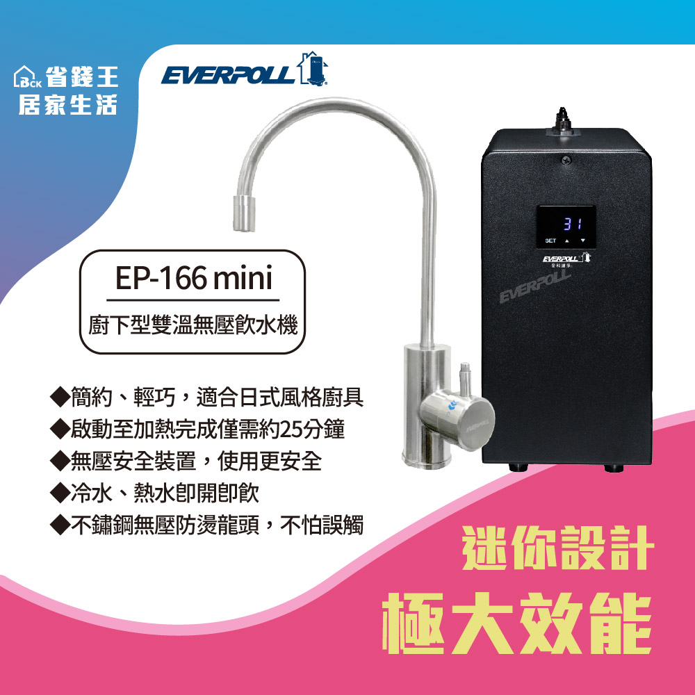 【省錢王-詢問打7折-再送濾心】愛科濾淨 EVERPOLL EP-168 PLUS 廚下型調溫無壓飲水機 EP168PLUS EP168