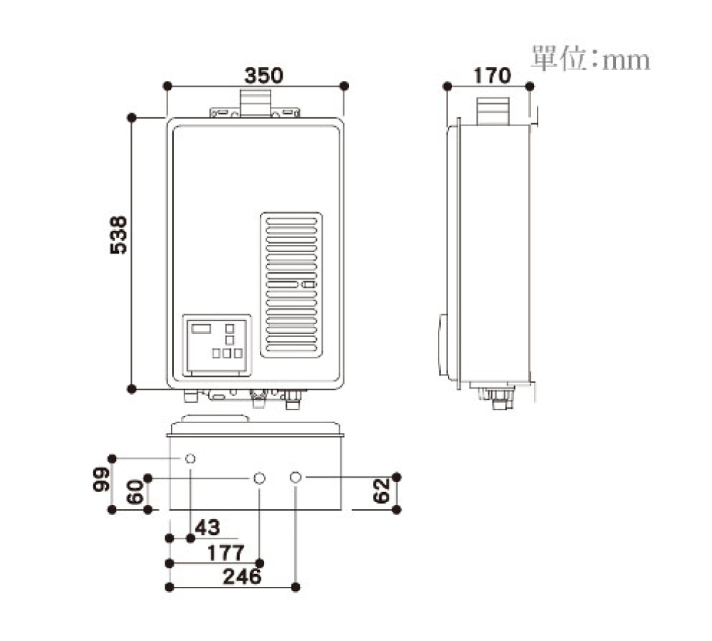 | 外觀尺寸 mm W×H×D | 350×538×170 |