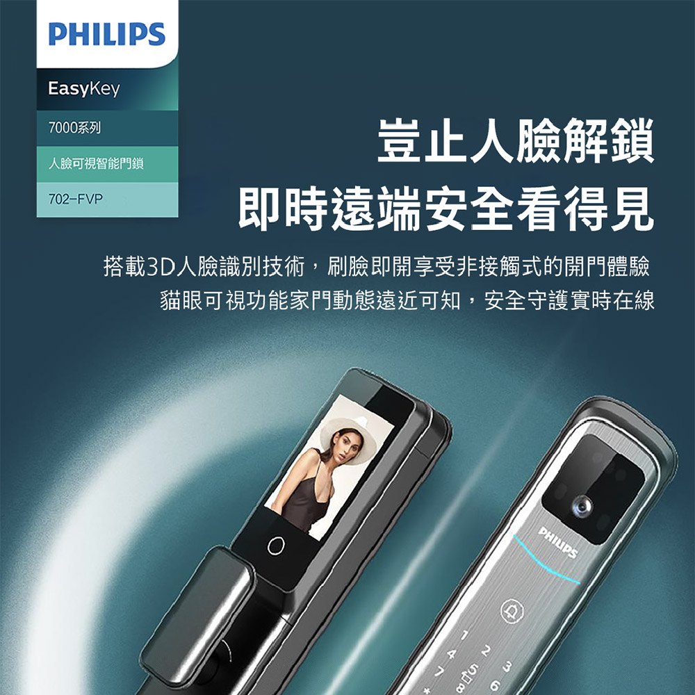 【詢問再打折-20年實體店面有保固】 PHILIPS 飛利浦智能鎖|EASYKEY 702-FVP 人臉可視智能門鎖
