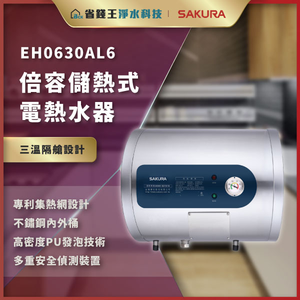 【免費申請補助】【詢問折最低價】SAKURA 櫻花牌 EH0630AL6 倍容儲熱式電熱水器 EH-0630AL6