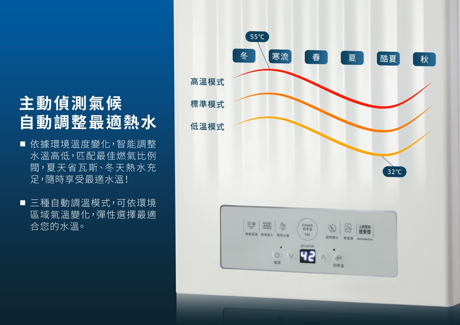【詢問折最低價 】SAKURA 櫻花牌 DH1670H 第三代 POWER 四季溫智能恆溫 強制排氣熱水器
