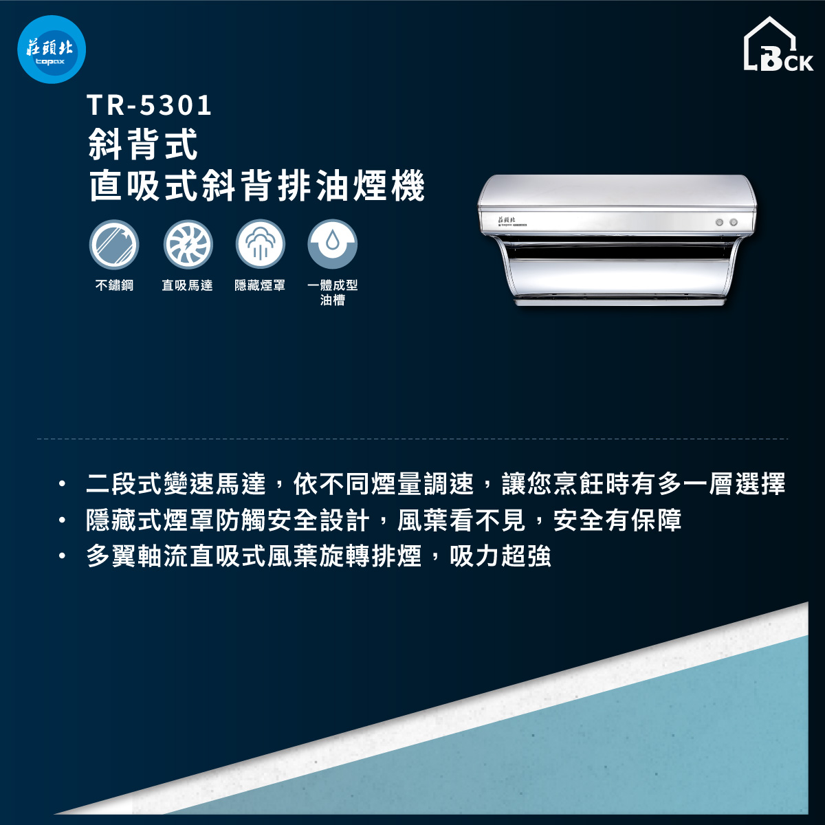 莊頭北 TR5301 直吸式斜背排油煙機 (80㎝/90㎝) TR-5301